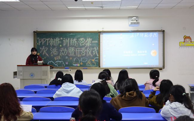 21级美术学院周怡君同学首先向大家介绍了开展此次训练营的主旨、训练营今后详细的课程安排、项目建设目标等活动内容。紧接着,周怡君同学给大家介绍了PPT的用途及使用,讲解了许多PPT的基础知识。生动的讲解使同学们都听得聚精会神。