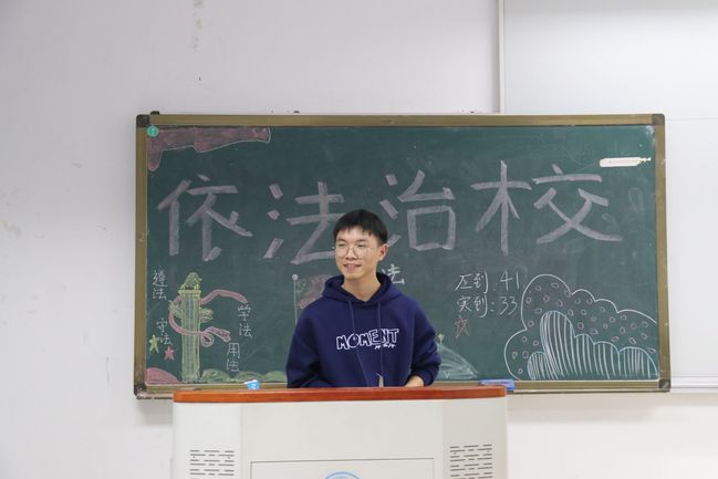 活动伊始,各班活动主讲人先带领大家齐唱班歌,并组织同学对以“依法治校,立德树人”为主题的几个问题进行互动问答,同时解答了大家在日常学习和生活中遇到的法律问题。互动结束后,各班主讲人又结合实际案例,详细讲解法律在校园治理中的应用,以及如何通过法律手段保障个人权益。此外,主讲人还组织员工进行小组讨论,探讨如何在日常生活中践行法治精神,培养良好的行为习惯。