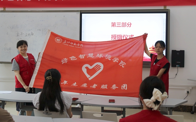 仪式由院团委副书记陈雪主持,首先全体人员肃立,共同唱响国歌,表达对祖国的热爱与敬意。随后,志愿者代表向丰月携三下乡全体志愿者进行了庄严的宣誓。