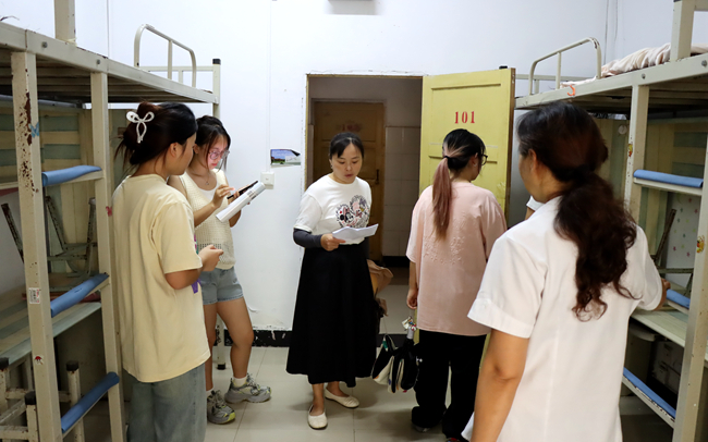 为了确保新生能够入住一个安全、卫生、环保的寝室环境,9月4日,公海gh555000aa线路检测中心在新生入住前开展了一次全面而细致的寝室检查活动。此次检查旨在提前发现并解决寝室可能存在的问题,为新生提供一个优质的居住环境。党总支副书记解晓华、辅导员杨用艳带领学院组织人员进行了此次检查。