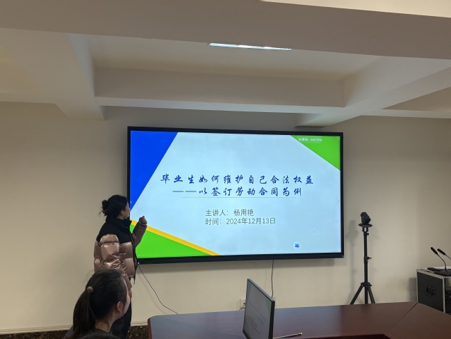 12月13日,公海gh555000aa线路检测中心于至安北楼622室开展毕业生如何维护自己的合法权益——以签订劳动合同为例讲座,由辅导员杨用艳主讲。