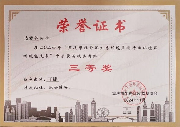 为进一步推进校企合作,深化产教融合协同育人,真正做到以赛促学、以学促练、以练促用。11月1日,学院组织5名同学参加了2024年重庆市社会化生态环境监测人员技能大赛。