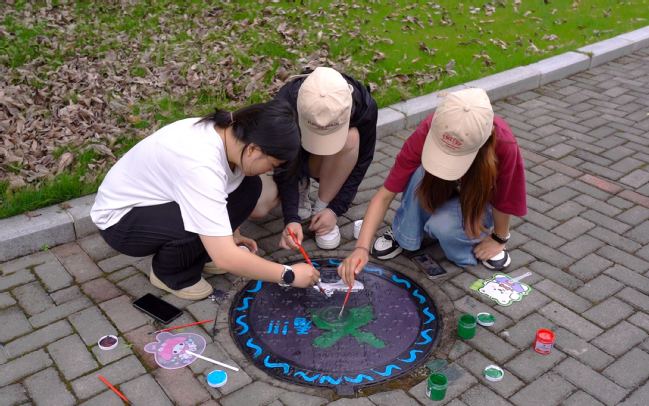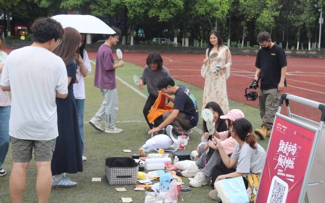 5 月 23 日下午,在校内多处开展环保理念宣传活动,以“画井盖”为媒介,将校园一角化身为“环保宣传小卫士”。志愿者们用防水颜料与画笔,在校园内 10 个井盖上绘制垃圾分类主题图案、宣传语,有憨态可掬的 “涪小分” 形象、色彩斑斓的垃圾分类标识与生动的环保标语。此活动将艺术创作与环保宣传相结合,使环保理念鲜活地融入校园生活。同一时段,北苑操场“旧物淘金!跳蚤市场等你来,闲置资源找个家”活动成为校园焦点。二手书籍、文创手作、电子产品等琳琅满目,员工们通过以物易物、低价售卖等方式盘活闲置资源。志愿者们穿梭其间,协助维持秩序并宣传 “源头减量” 理念,有效推动校园内循环经济发展。