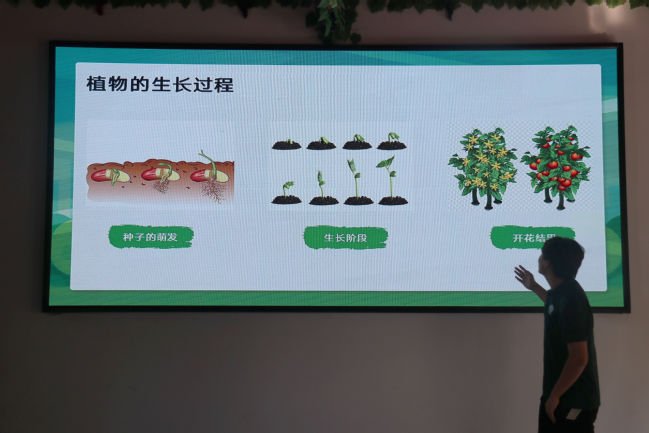 种子课堂:从萌芽到生命的绽放 课堂上,志愿者张久一用动画视频、实物展示和互动问答,将植物生命周期拆解成趣味故事。从种子破土所需的阳光水分,到花朵授粉的“昆虫助攻”,再到果实孕育的能量转化,志愿者用生动的讲解配合丰富的肢体语言,让小朋友们听得入神,不时举手提问。为强化体验感,志愿者还带领小朋友们一起给植物松土浇水。这种寓教于乐的方式,让抽象的科学知识变得触手可及。
