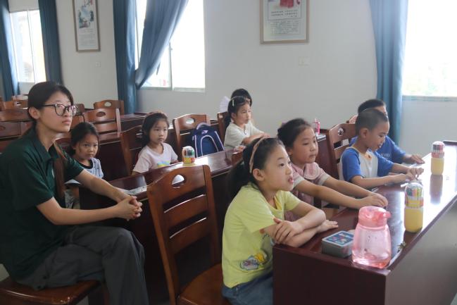 “这片竹编上的‘人字纹’藏着什么秘密?”“蜡染的蓝,为什么百洗不褪?”志愿者轻点鼠标,大屏幕上跃出精美的竹编纹样特写、靛蓝浸染的工艺流程图。小朋友们的小脑袋不自觉地前倾。当志愿者揭秘一道竹编需经破篾、刮青、编织等十二道工序时,活动室里响起一片轻轻的“哇——”声,专注的寂静里涌动着对古老智慧的惊叹。“未来设计师”头脑风暴中,孩子们举手描绘“会发光的智能竹灯”“自动变色的蜡染T恤”,天马行空的想象在静默思考中迸发火花。 “小朋友们眼里的光让我们震撼,没人交头接耳,提问时小手高高举起。”志愿者张久一课后感慨。志愿者黄晶洁表示,“当小朋友们追问‘哪里能看真正的蜡染缸’时,我知道,文化的种子已在他们心里扎了根”。