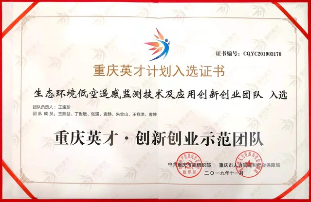 重庆英才·创新创业示范团队——生态环境低空遥感监测技术及应用创新创业团队(重庆市科技局)
